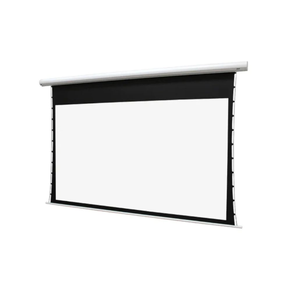 A premium motorised projection screen featuring tab-tension technology for a perfectly flat viewing surface. The 16:9 HD fabric delivers sharp, high-contrast visuals, ideal for home theaters, boardrooms, and professional presentations. Smooth, quiet operation with long-lasting performance.